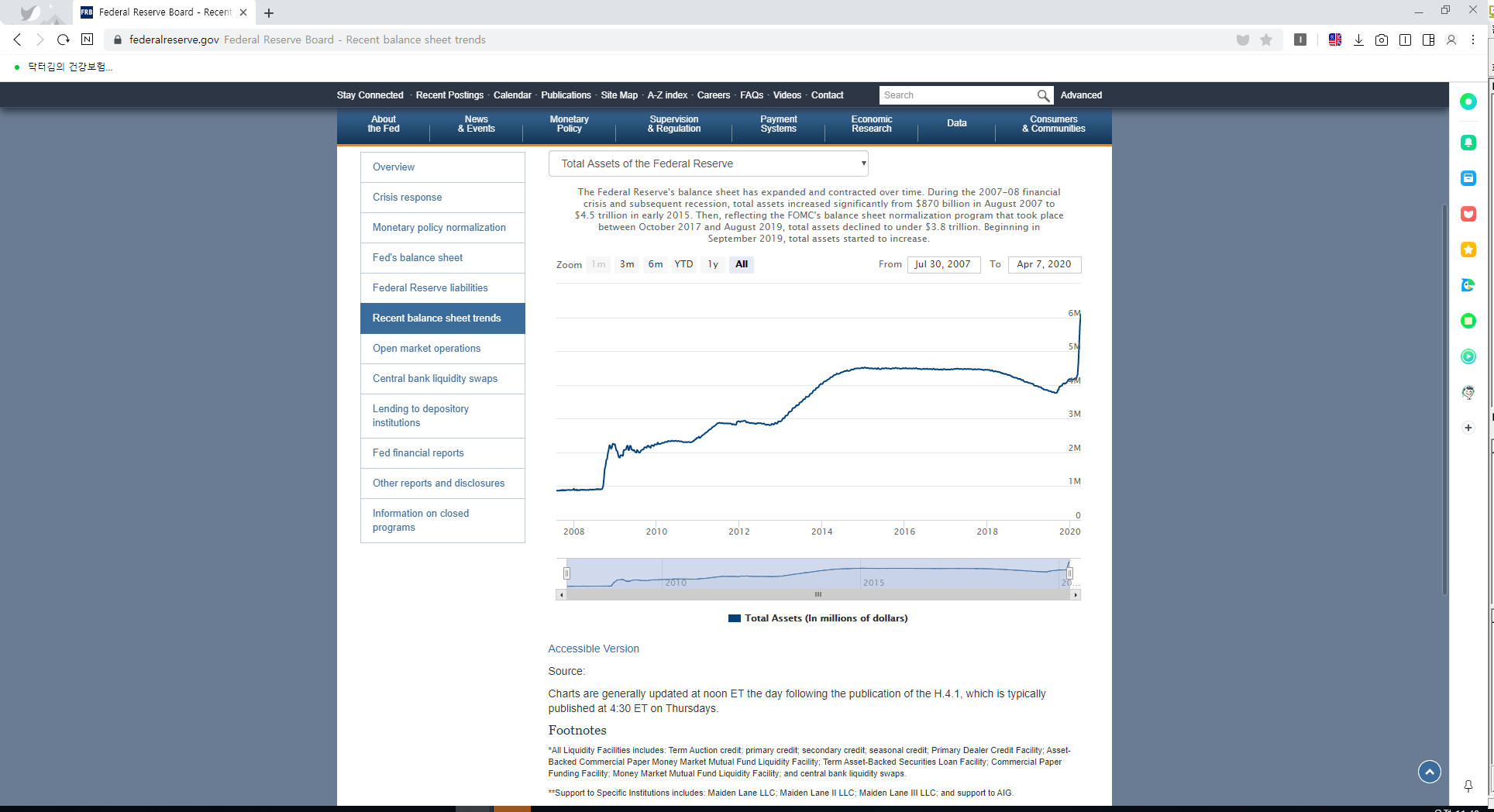FED 의 총자산 추이를 확인 할 수 있는 사이트를 소개합니다.