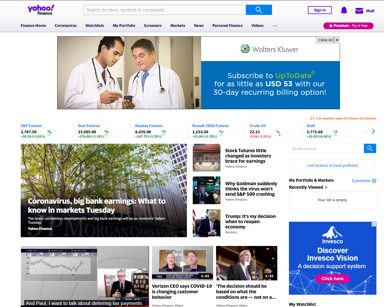 At Yahoo Finance, you get free stock quotes, up-to-date news, portfolio management resources, international market data, social interaction and mortgage rates that help you manage your financial life.