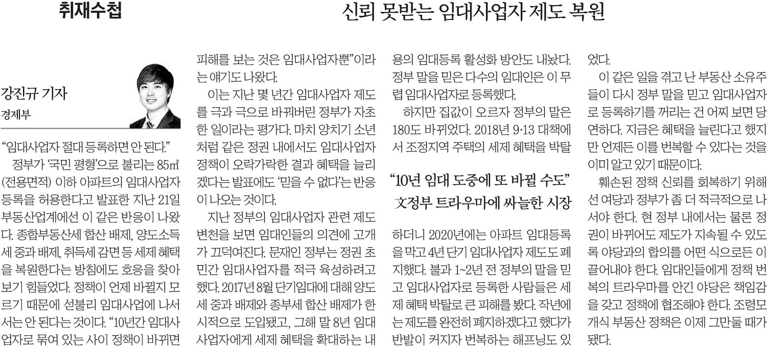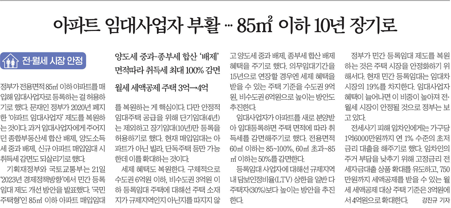 민간 등록 임대사업자 복원 - 전용 85m2 이하