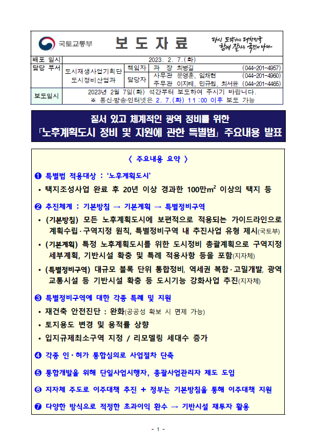 230207(석간)_노후계획도시_정비_및_지원에_관한_특별법_주요내용_발표(도시정비산업과).pdf
